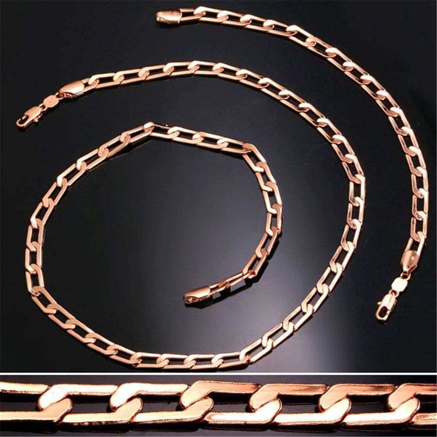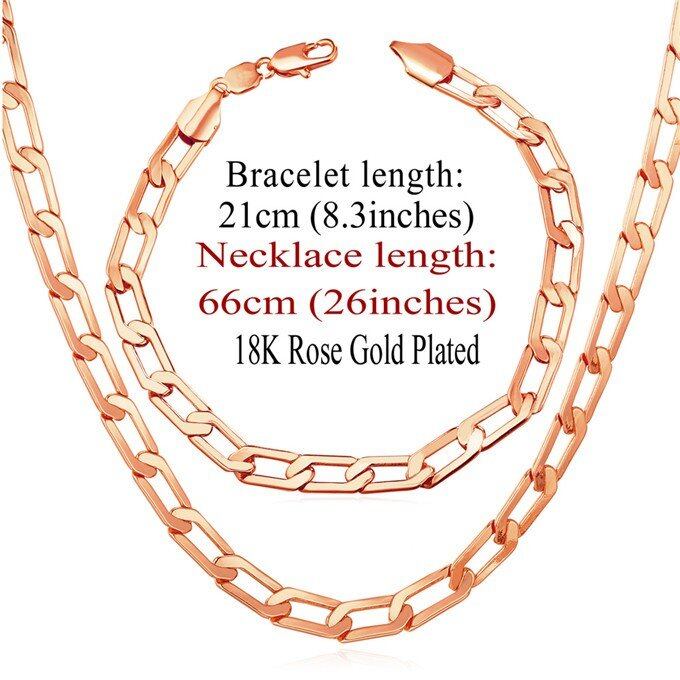 /シルバー/ローズ カラー リンク チェーン セット ファッション トレンディー ブレスレット ネックレス セット