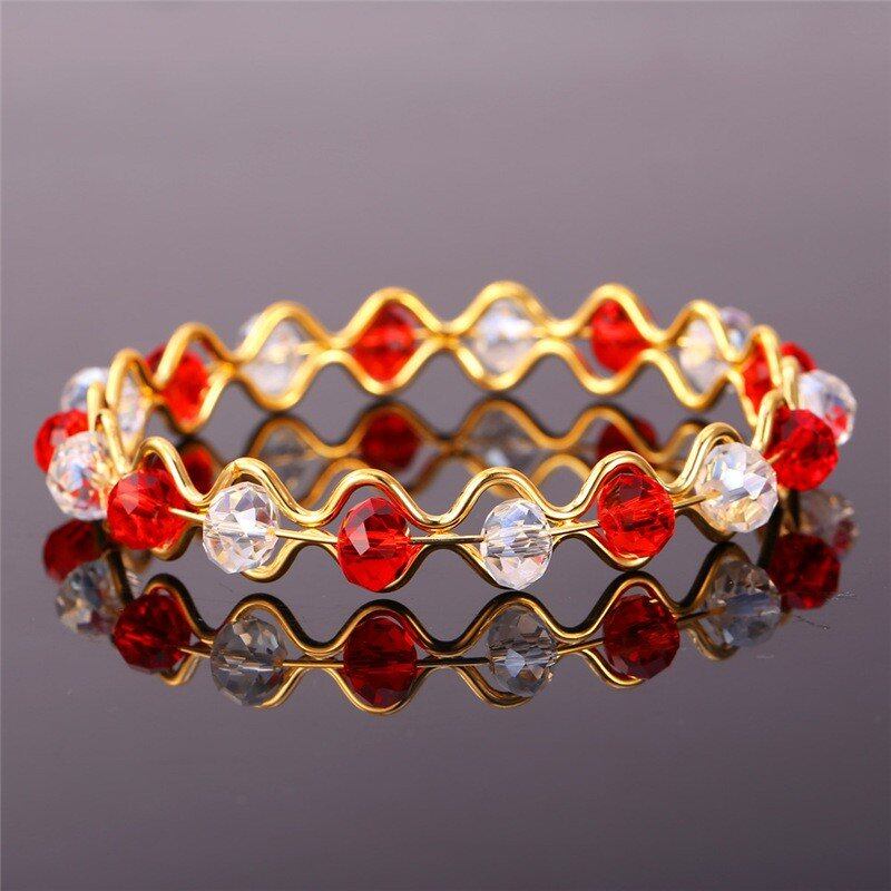 レディース ブレスレット バングル チャーム 赤 ビーズ 黄 カラー リンク ボール 腕輪 80001968