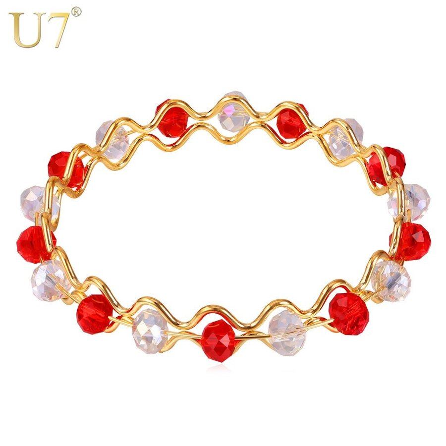 チャーム 赤 ビーズ ブレスレット 黄 カラー リンク ボール ブレスレット 腕輪