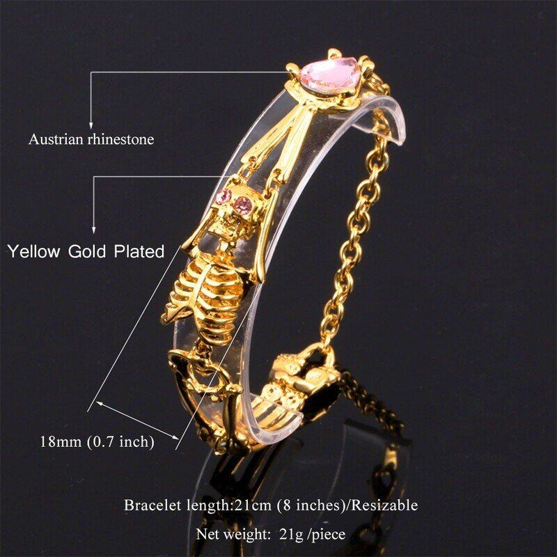 クール スケルトン ブレスレット カラー 21 cm リンク チェーン ヒップホップ チェーン リンク ブレスレット