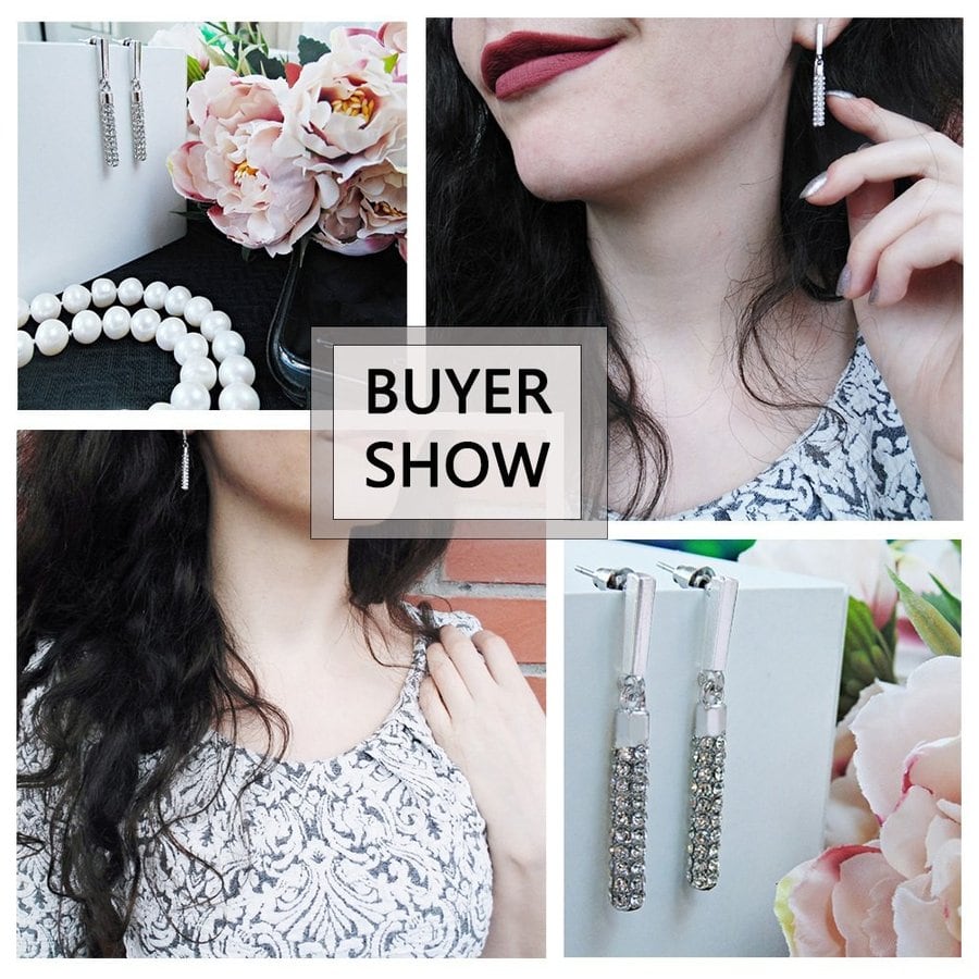 クリスタル ピアス トレンディー /シルバー カラー シリンダー ラインストーン ダングル ピアス