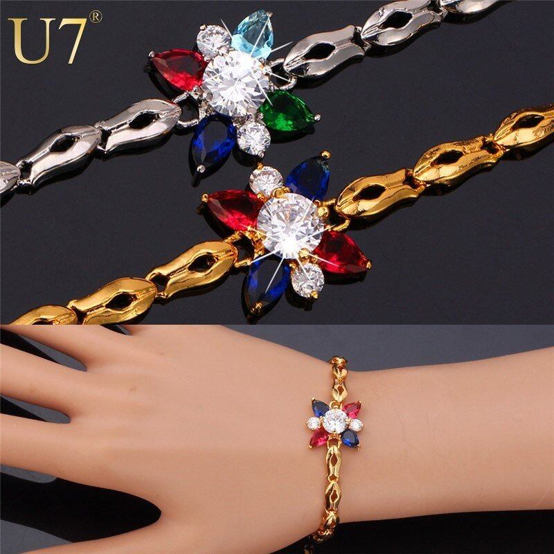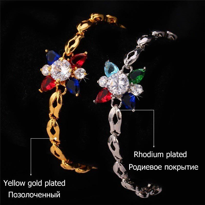 レディース ブレスレット キュービック シルバー カラー フラワー ジルコン チェーン 80002003