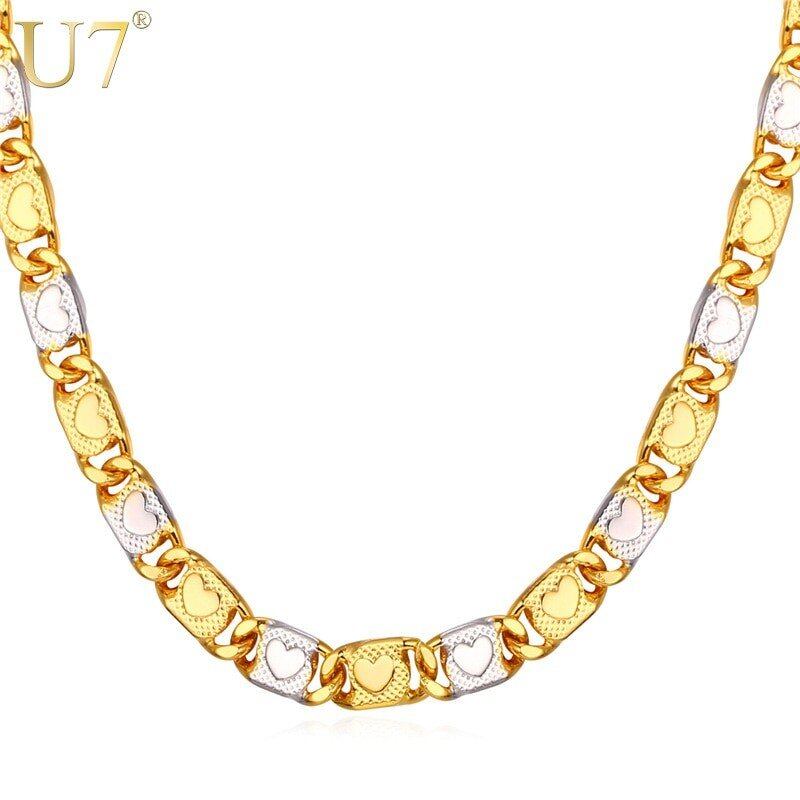 2 トーン カラー チェーン ネックレス ハート パターン トレンディー リンク チェーン ネックレス