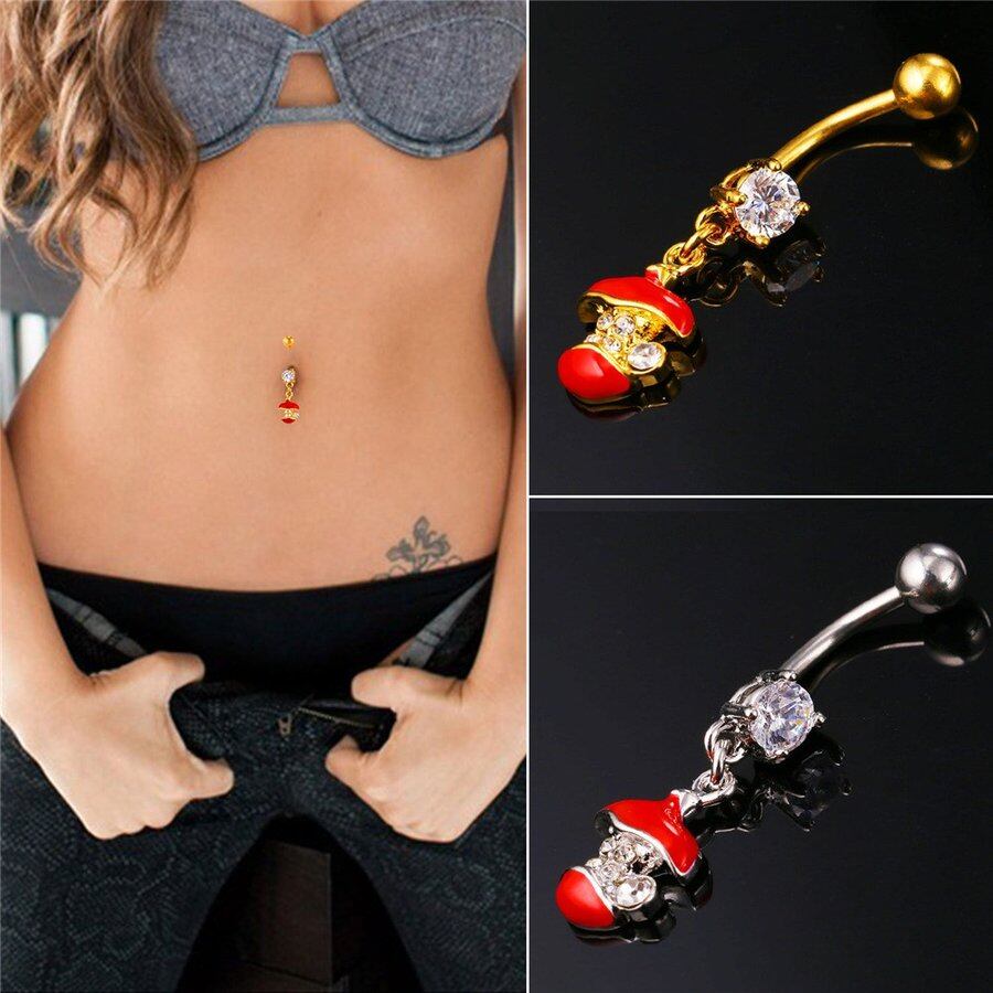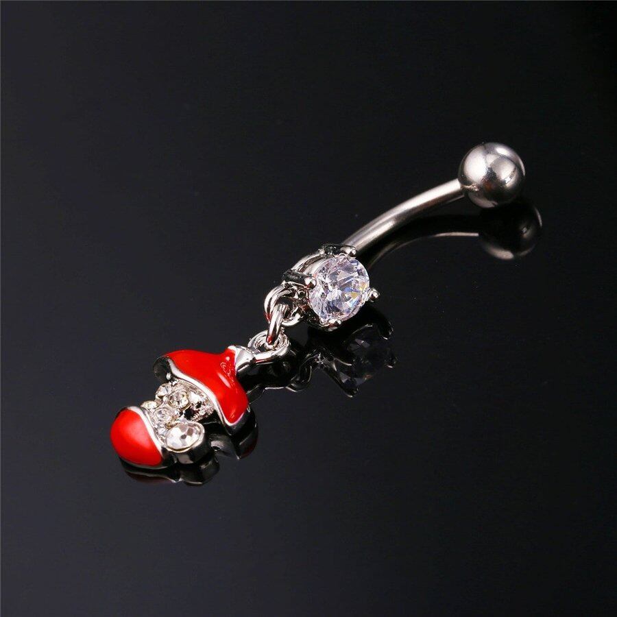 赤 クリスタル 可愛い 林檎 腹 ボタン リング ボディ /シルバー カラー ネーブル リング 継ぎ