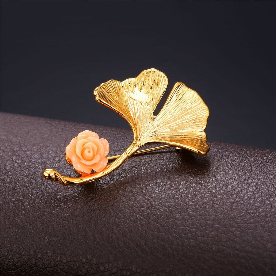 ビンテージ 葉 ブローチ メンズ カラー ラッキー トレンディー ピンク フラワー ピン ブローチ