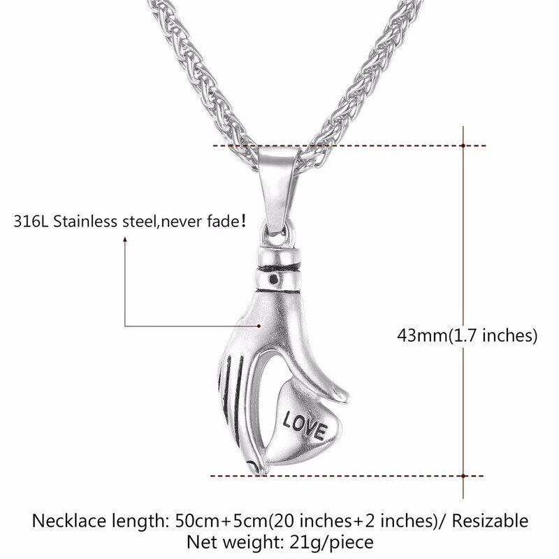 love ハンド カラー ステンレス ロマンチック ハート ネックレス
