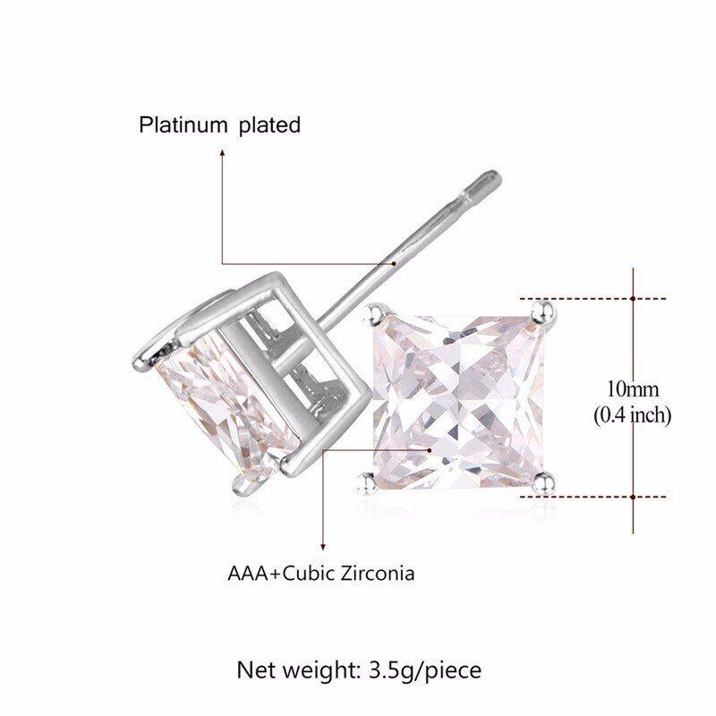 ブランド クリスタル ピアス ファッション カラー スクエア キュービック ジルコニア スタッド ピアス